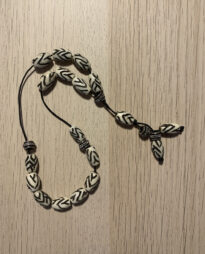 Ett svart snöre med 18 vita pärlor på som troligtvis är gjorda av ben. Pärlorna har svarta karvade mönster på. Det är också sex metallpärlor. Vikt dubbel är den cirka 15 centimeter lång. Den låter när man leker med den, och används som något avstressande för händerna, såsom när folk röker eller klämmer på stressbollar.